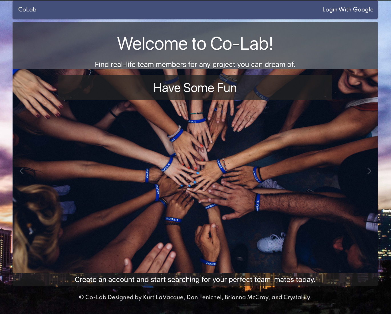 A full stack web application designed to facilitate collaboration between people looking to create or join a project or team. This can serve everyone from developers looking to collaborate on a personal project to people looking to start a local kickball team.